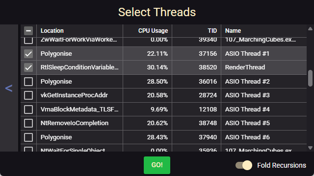 Accumulate repeating call-stacks and show them sorted by their total time spent.